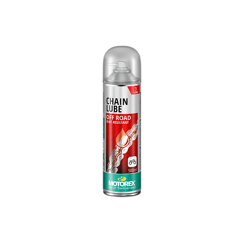 תרסיס MOTOREX CHAIN LUBE OFF ROAD הוא שמן שרשרת סינטטית לחלוטין, מפחית בלאי.